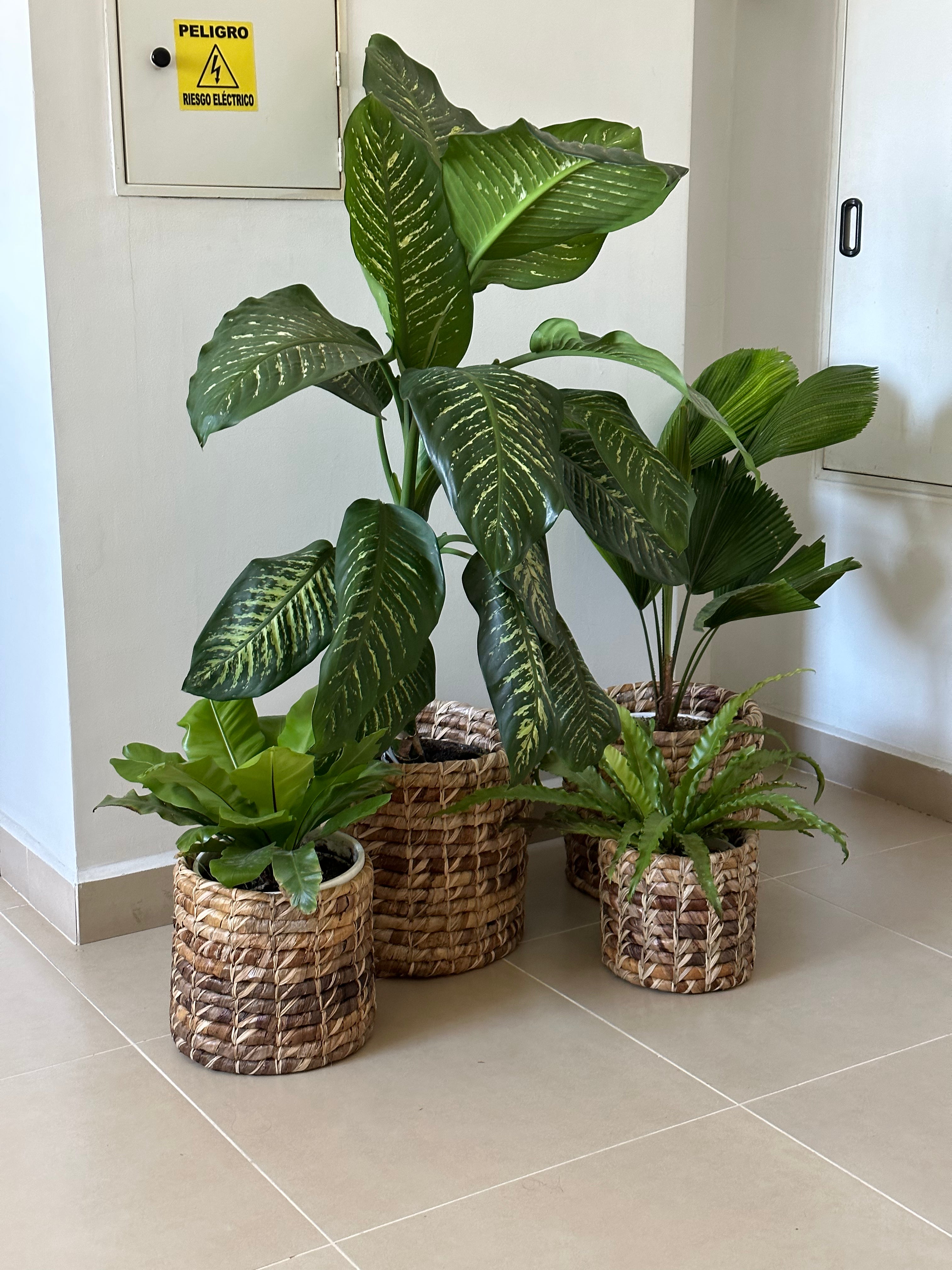 Tejidos artesanalmente en fibra de plátano, un material natural que aporta calidez, textura y un toque orgánico a tu hogar. La fibra de plátano es reconocida por su encanto rústico y su capacidad para hacer que cualquier espacio se sienta más auténtico y acogedor.