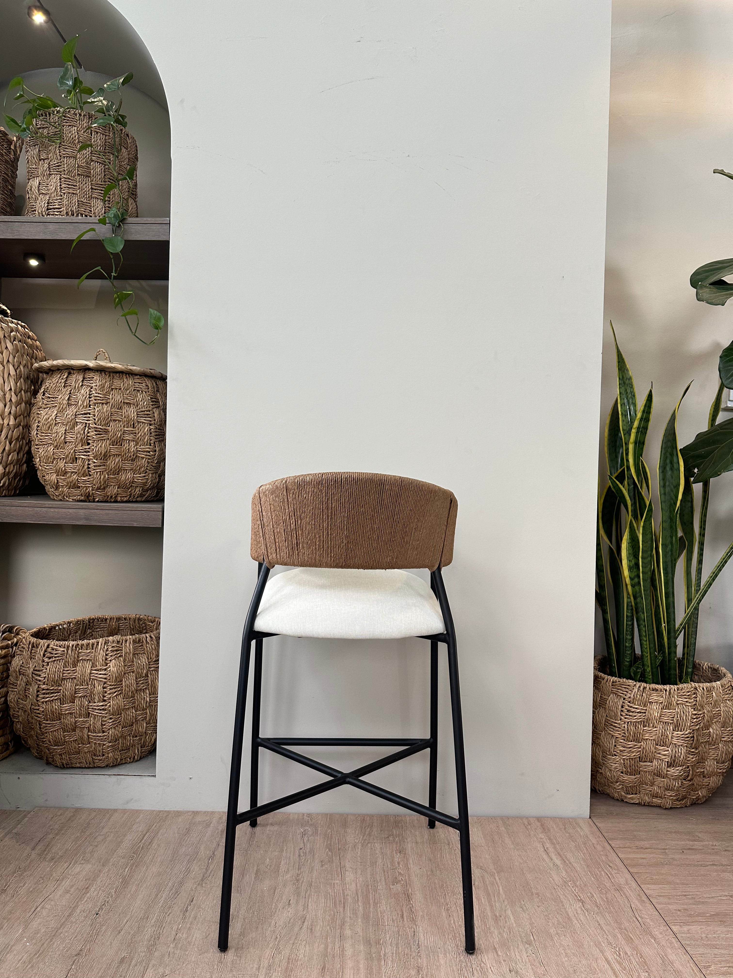 Jacinta es esa combinación entre la artesanía, la comodidad y calidez. Es elegida para ocupación de barras en interiores. Está elaborada en hierro con pintura electrostática, un asiento tapizado en tela anti fluidos y el espaldar tejido en cordón cienaguero.
