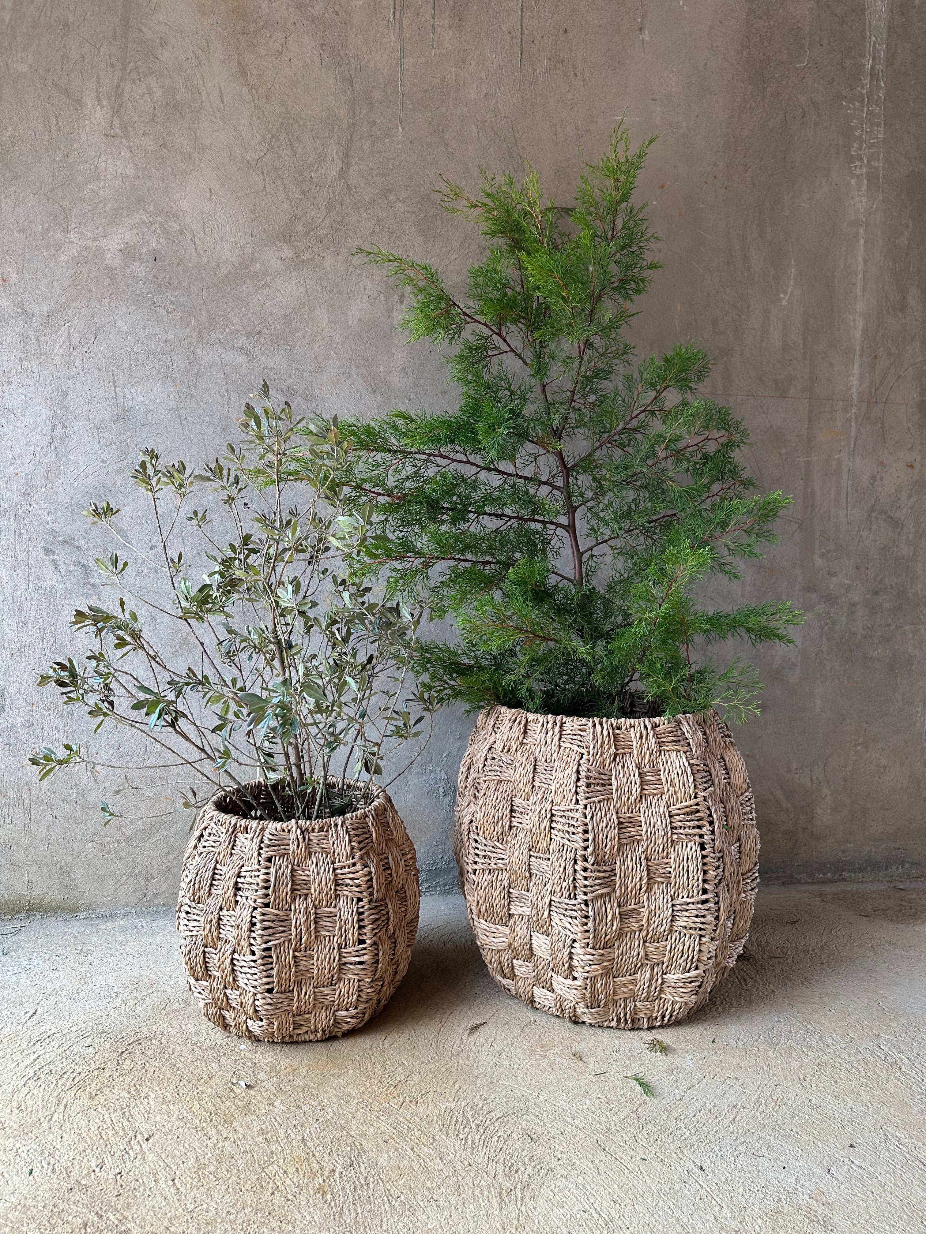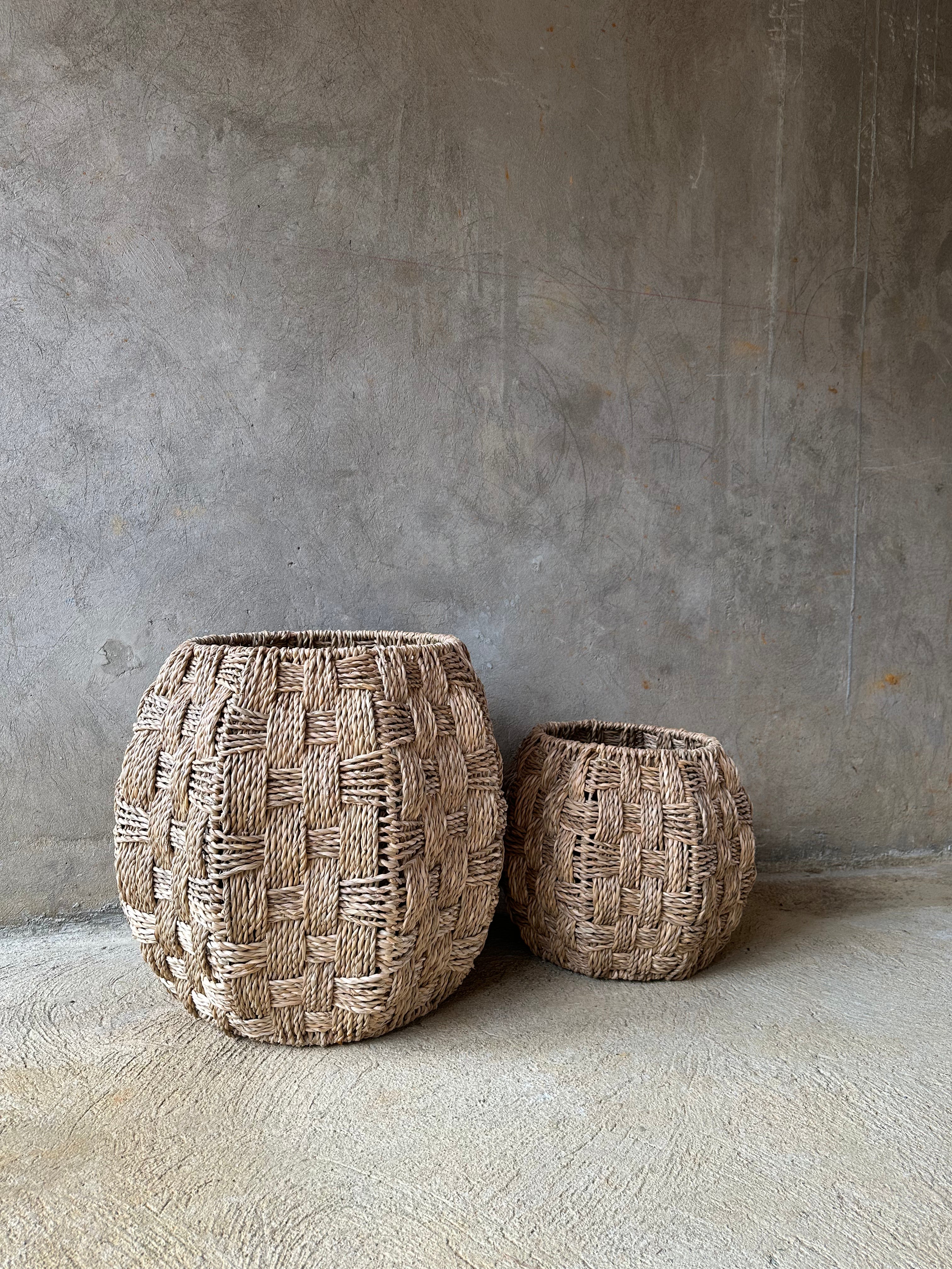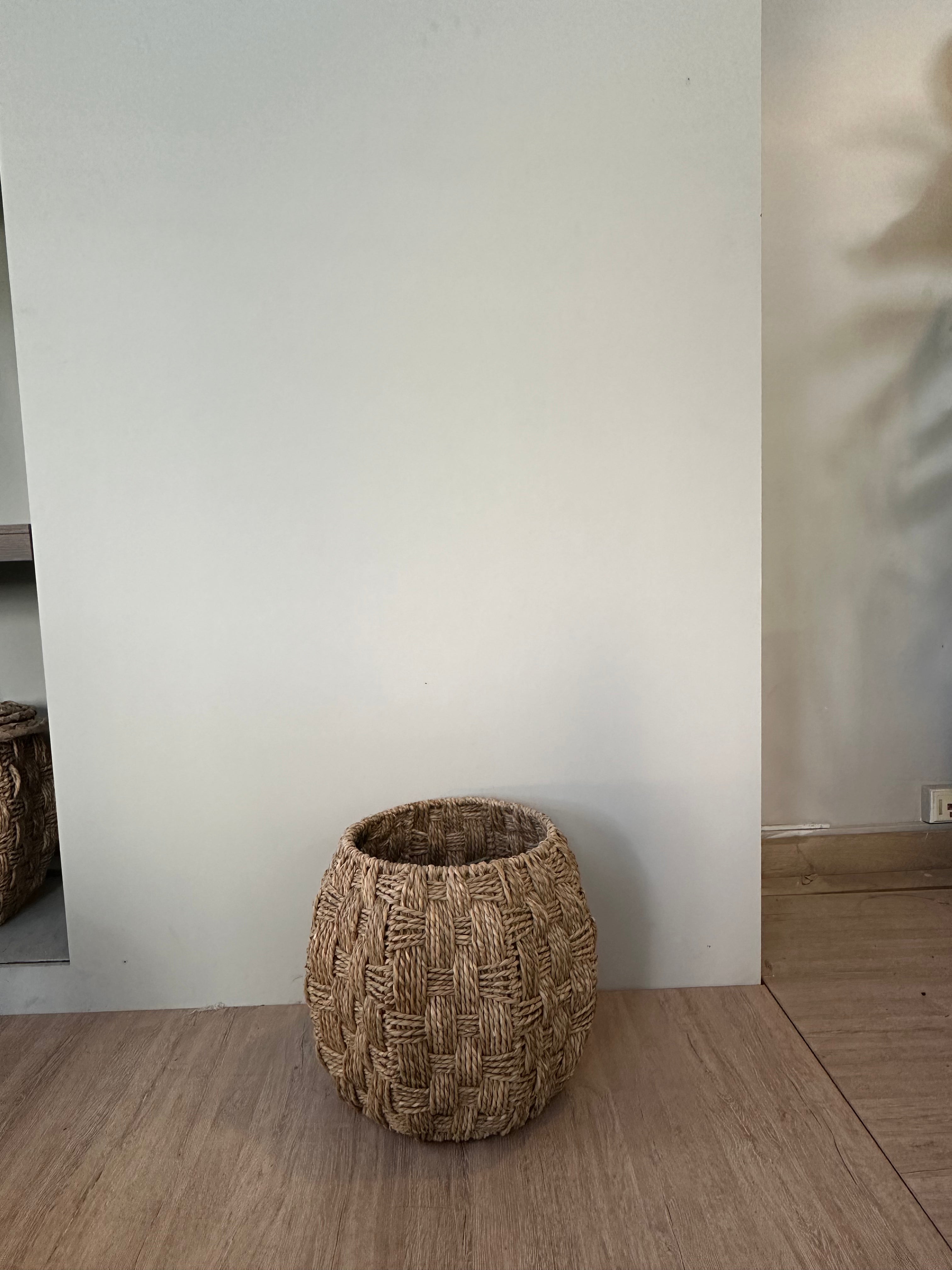 Un canasto multiusos tejido en fibra de enea sobre una estructura metalica, es un complemento que aporta calidez, autenticidad y un toque natural a tus espacios. Ideal para organizar juguetes, plantas, mantas y más. Disponible en dos tamaños.
